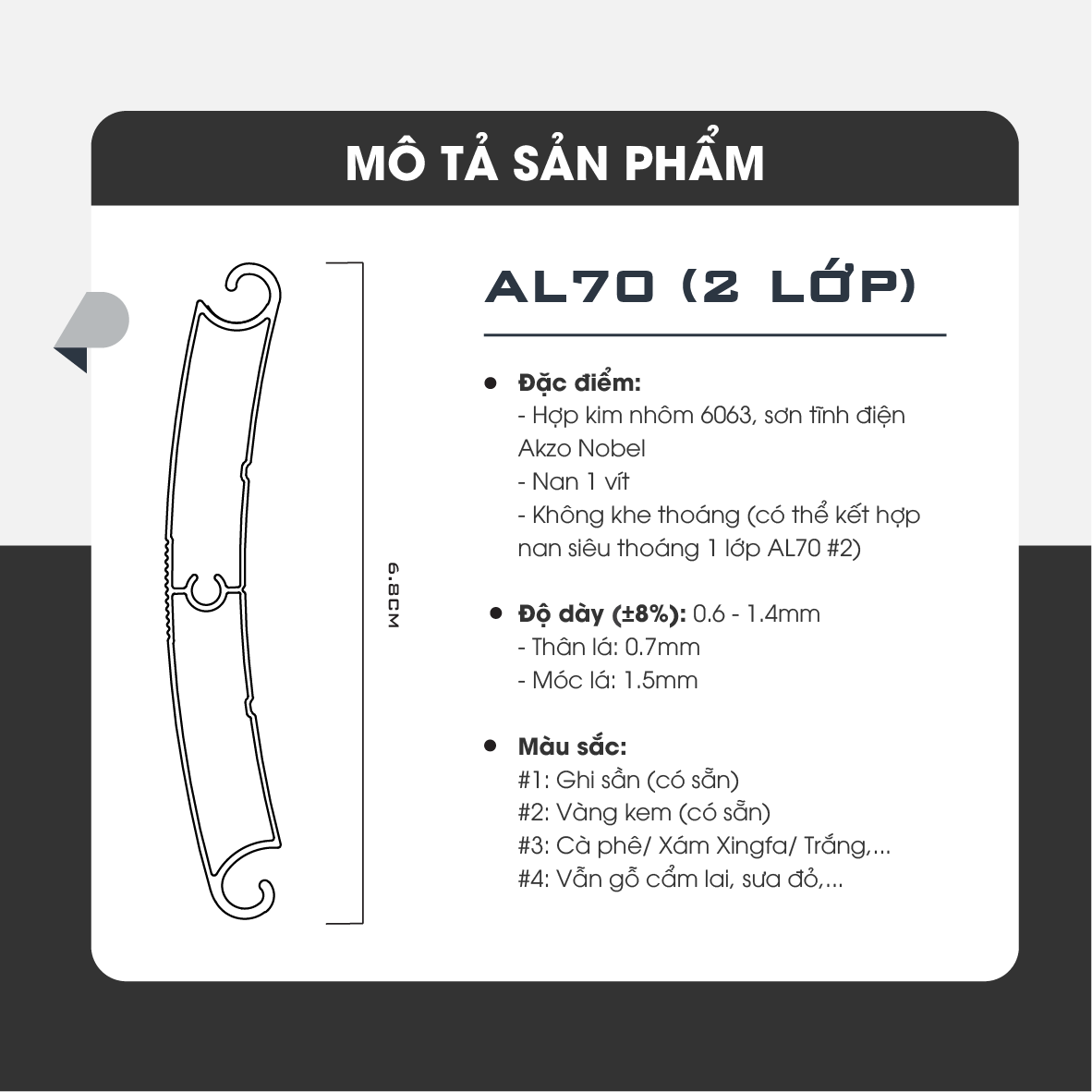 – Không khe thoáng (có thể kết hợp nan siêu thoáng 1 lớp AL70 #2)