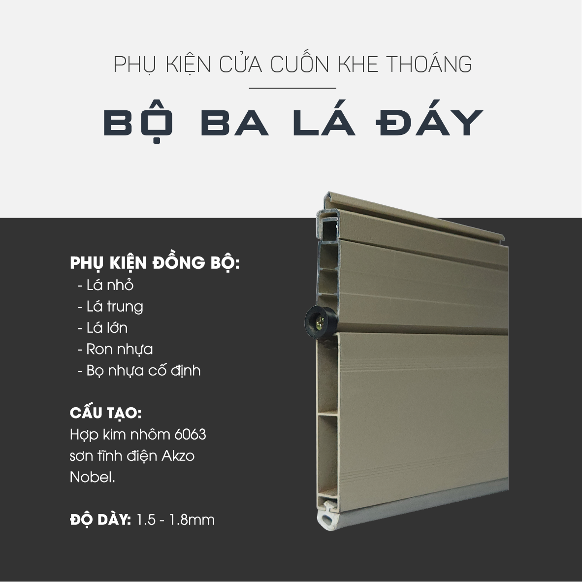 Bộ ba lá đáy của Alumdoor là một trong những sản phẩm được thiết kế để tích hợp công nghệ tự dừng (chống xô) dành riêng cho dòng sản phẩm cửa cuốn khe thoáng mang lại sự an toàn và tiện lợi tối đa cho người sử dụng. Với chất liệu cao cấp hợp kim nhôm 6063 phủ sơn tĩnh điện Akzo Nobel, bộ ba này không thể tách rời nhau vì mang đến tính thẩm mỹ cao, ngăn ngừa bụi bẩn xâm nhập mà còn mang tới trải nghiệm tốt hơn cho người sử dụng. Liên hệ để nhận ngay báo giá.